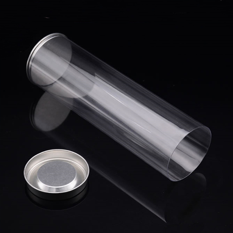 Round Transparent Box With Tinplate Lid Mental Lids Tinplate Lids Plastic Cylinder Packaging